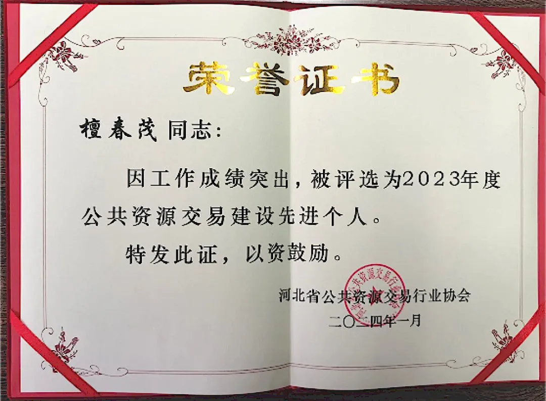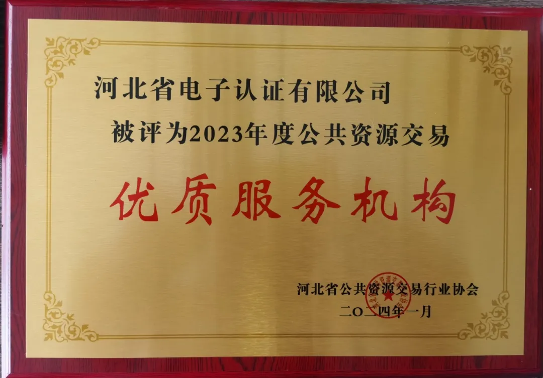 在會議上,河北CA及市場總監(jiān)檀春茂榮獲雙證書,分別為“優(yōu)質服務機構”榮譽獎牌和“公共資源交易建設先進個人”榮譽證書,這是對河北CA過去一年里積極參與河北省公共資源交易行業(yè)協(xié)會工作、助力河北公共資源行業(yè)高質量發(fā)展的認可與鼓勵。